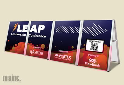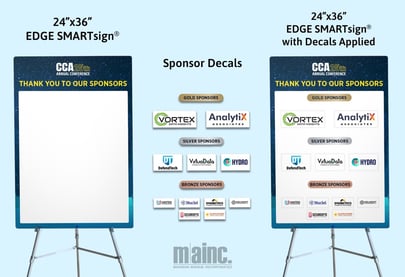 With the costs of hosting events on the rise, leaning on your partners to offset costs can make all the difference when it comes to stretching your budget dollars further. And while your sponsors can help you deliver a stellar experience for your attendees, ensuring they get the recognition they deserve is crucial for delivering valuable ROI to your partners. Make your sponsor signage truly stand out by incorporating decals that represent different sponsor levels. With this approach, you can customize each sponsor’s logo or message on the easel sign, creating a professional and polished look that highlights each sponsor’s contribution, incorporate evolving QR codes, and highlight event-specific products or deals. This method also allows for easy updates or modifications, especially if you opt for a general branded sign that you can use across multiple events for different sponsors, making it ideal for multi-day events or evolving sponsorship tiers while saving you a few budget dollars at the same time!