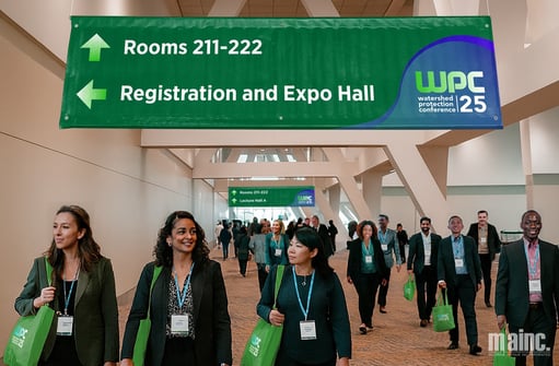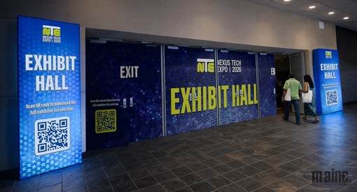 We’ve already discussed floors and walls as prime wayfinding surfaces, but did you know your ceiling can get in on the fun as well? Ceiling-hung banners use suspended fabric signs or lightweight directional graphics to guide attendees from a distance. This overhead visibility makes them them ideal for environments where floor space is limited or sightlines are crowded. By elevating key directional messaging above the bustle of the show floor, these banners remain visible even in dense crowds and help attendees orient themselves before they reach decision points. Depending on the size, they also make for great landmarks in the maze-like nature of a busy tradeshow floor. Creatively, overhead signage can reinforce event themes through bold typography, color-coded designs, or repeating elements that mirror your ground-level wayfinding elements for a cohesive event feel top to bottom - literally! Since they do often require a bit of infrastructure to roll out, these types of designs are typically best used in exhibit aisles, long hallways, registration entrances, and large open venues where early visual cues help prevent bottlenecks and keep traffic moving smoothly.