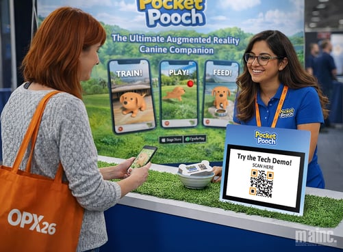 Making it Happen: At a product display, add a sign that invites attendees to “Scan to See It in 3D!” With a quick scan, their phone launches an AR demo that places a virtual version of the product right in front of them. These interactive experiences go beyond traditional displays and give attendees a hands-on feel for a product in a way that’s engaging, memorable, and hard to walk past.