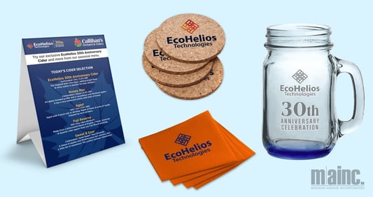 Branded Touchpoints & Details Not every branding moment needs to be big to make an impression. Small, thoughtful details like branded coasters, drink sleeves, menu cards, or tent cards can carry your theme through in subtle yet impactful ways at your various event activations. These tactile, up-close elements often have the longest dwell time with attendees, keeping your logo or message front and center during conversation, meals, and networking breaks.
