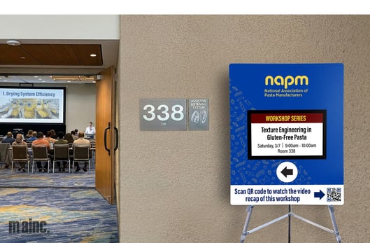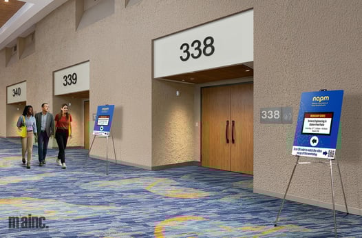 Together, these quick updates keep attendees confident about where to go and what’s happening next without taped-on edits or rushed reprints. Your signage evolves alongside your program, helping each new session start smoothly and ensuring the content you’ve worked so hard on isn’t missed!