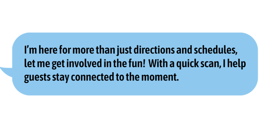 Pain Points Solved: No expensive tech kiosks required, No separate signage needed for engagement prompts, No outdated URLs are printed permanently on graphics, Digital updates without digital sign overhead, Accessible, extended attendee interaction beyond the event floor