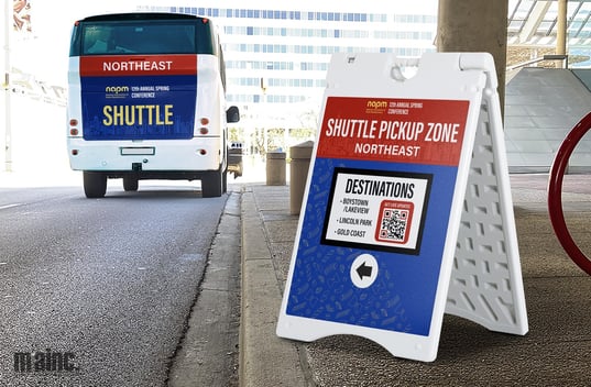 Pain Points Solved: No temporary, single-use transport signs required, No confusion about shuttle pickup locations, No emergency print jobs for updated routes, No mismatched signage styles between venues or off-site activation locales, Streamlined attendee flow between hotels, venues, and off-site events